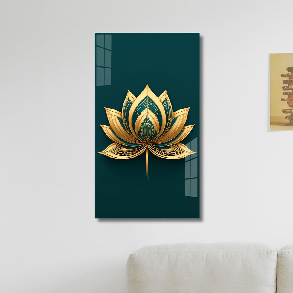 Acrylic Vertical Wall Art– Golden Lotus