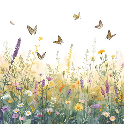 A soothing canvas of wildflowers in bloom with butterflies dancing above, bringing nature’s calm and freshness indoors.