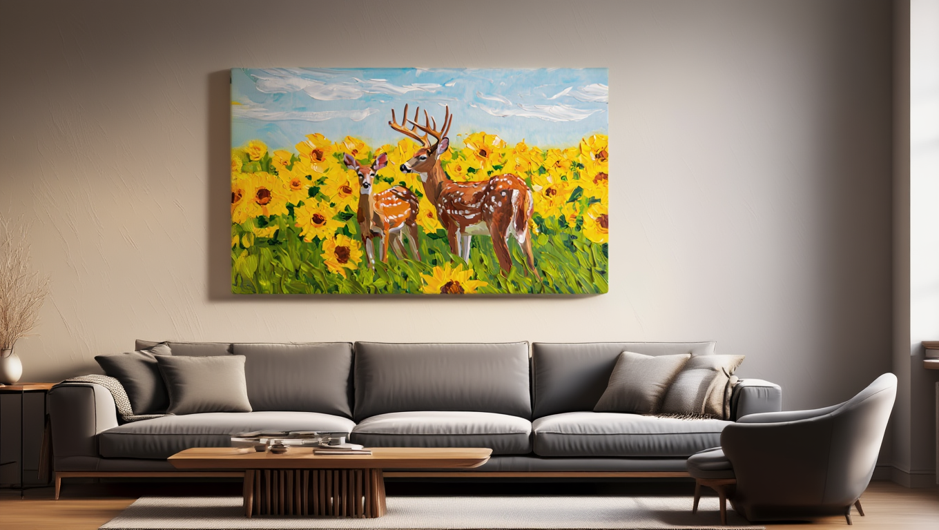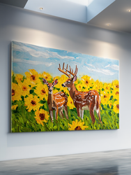 Canvas Wall Art - Deers in Sunflower Field