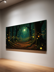 A magical night forest scene illuminated by glowing fireflies, adding serenity and wonder to any space.