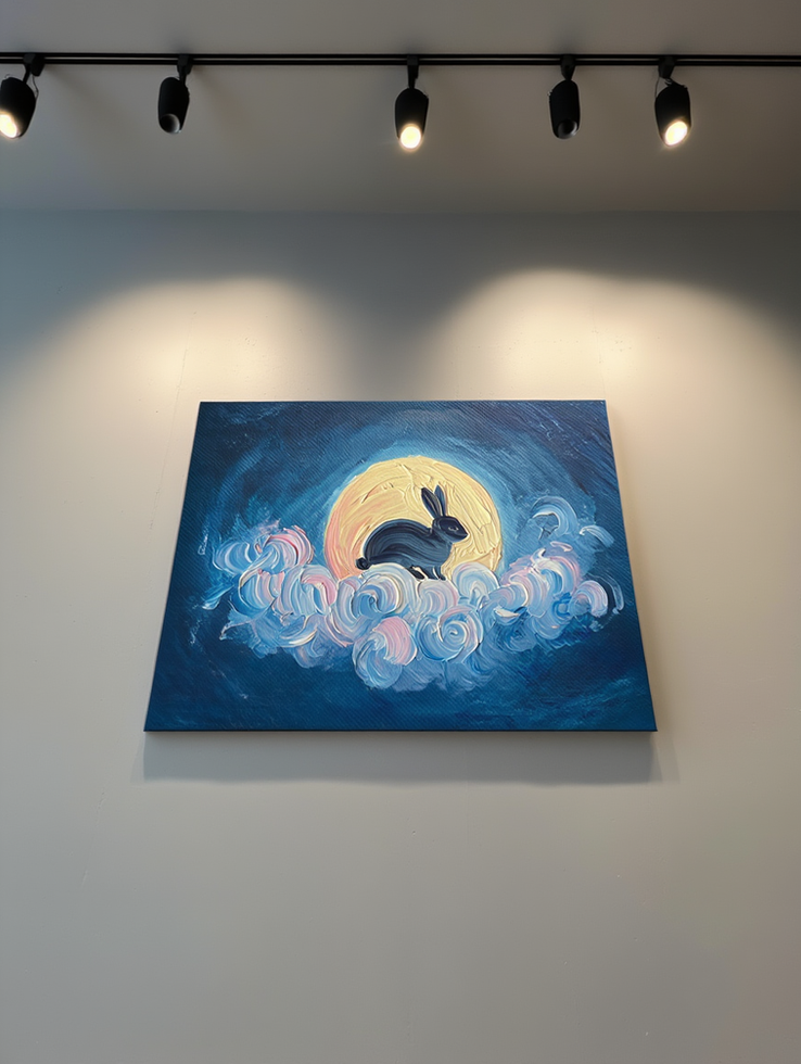 This cute moonlit bunny design creates a peaceful, calming atmosphere ideal for relaxation.