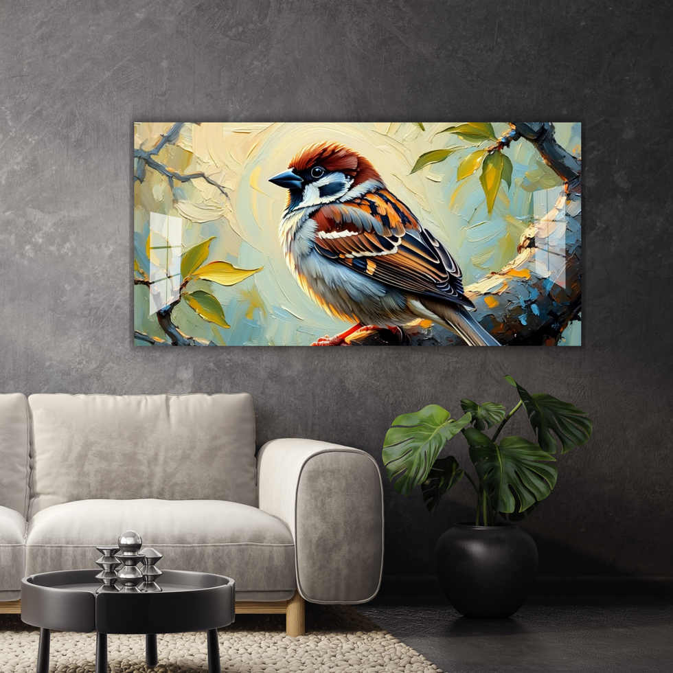 A soft, radiant sparrow painted with warm sunrise tones — bringing peace, simplicity, and nature’s gentle beauty into your home.