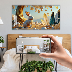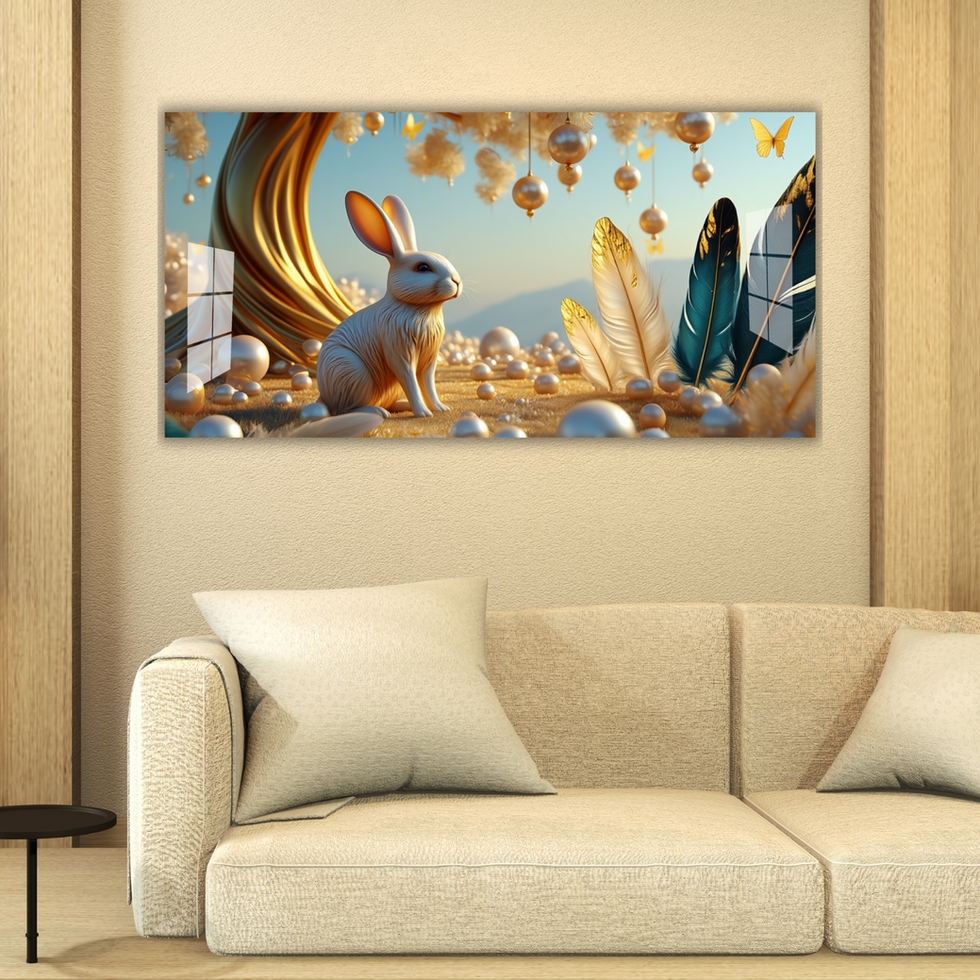 A magical blend of innocence and elegance — this golden bunny artwork brings warmth, charm, and fantasy light to your home. 🌤️💛
