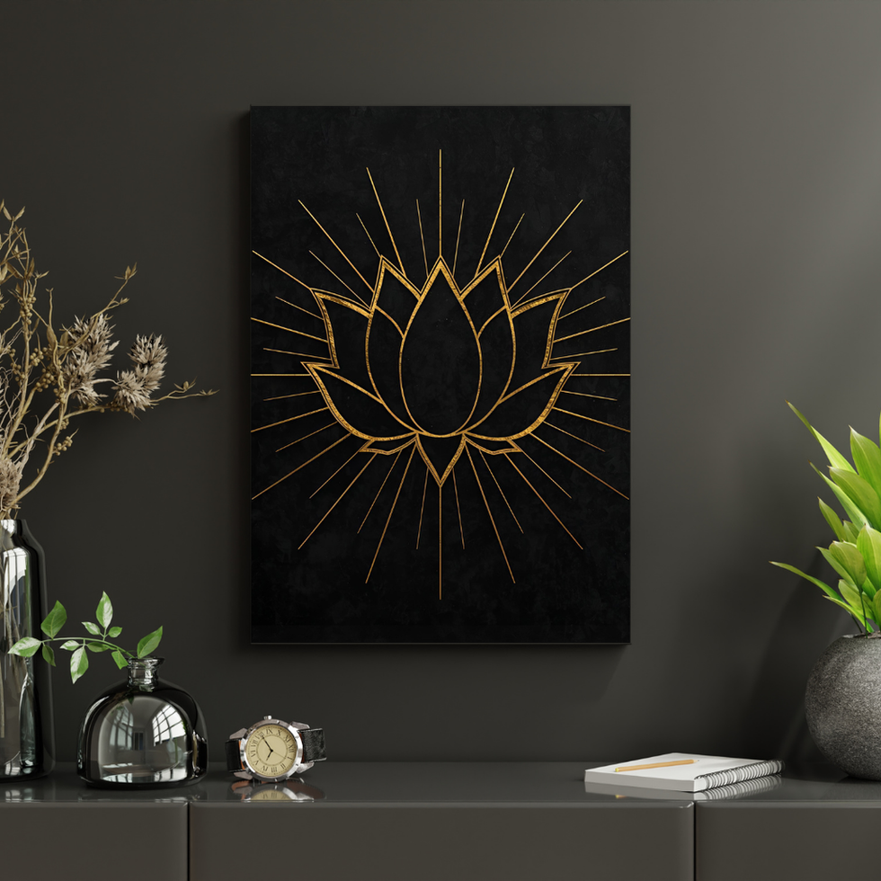 A minimal yet powerful design of a golden lotus with radiant beams, symbolizing purity, enlightenment, and divine awakening.