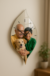 Bring the calm of nature into your home with our Leaf Shape Acrylic Wall Clock. Designed with a graceful, organic contour, this glossy acrylic clock beautifully frames your favorite photo—perfect for capturing moments with family, pets, or loved ones. Its sleek design, reflective finish, and minimal hour markers make it a stunning decor piece. Whether for gifting or personal use, this unique wall clock adds a natural elegance and a warm, personal touch to any room.
