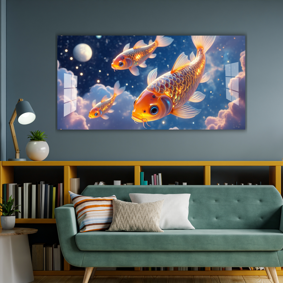 Elegant, peaceful, and magical — these glowing koi drift through a starry sky, bringing calm and positivity to any space. 🌌💛