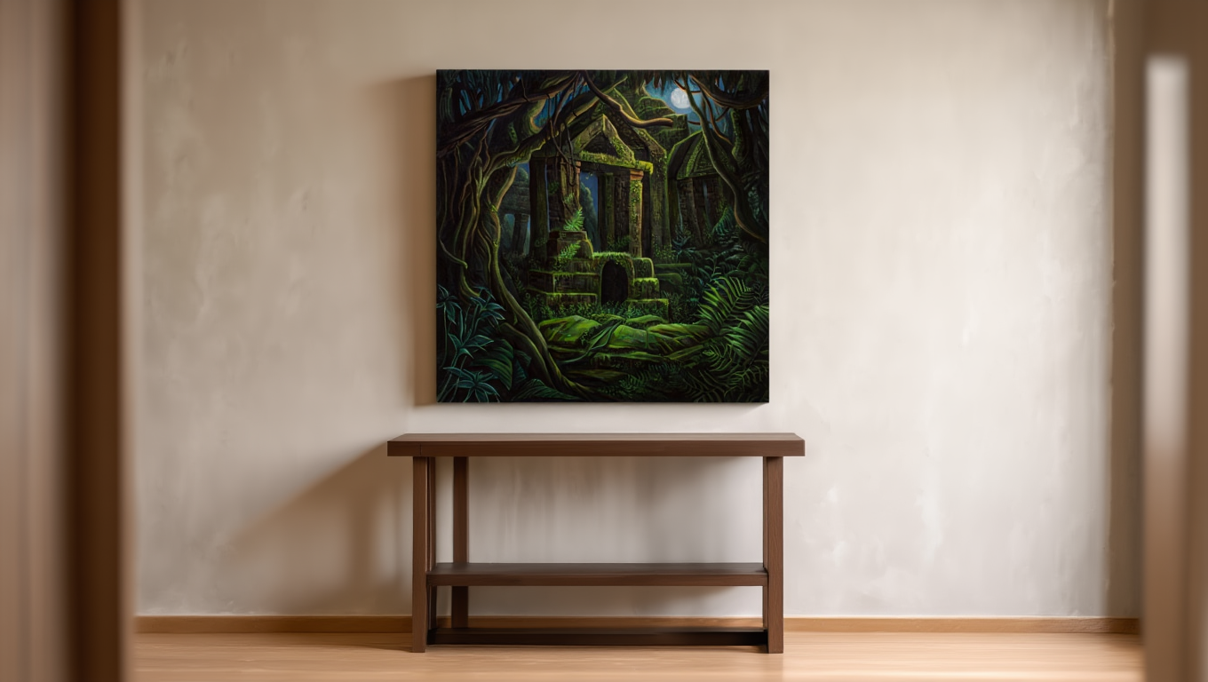 Step into a world of mystery and forgotten history with this enchanting mystical ruins artwork.