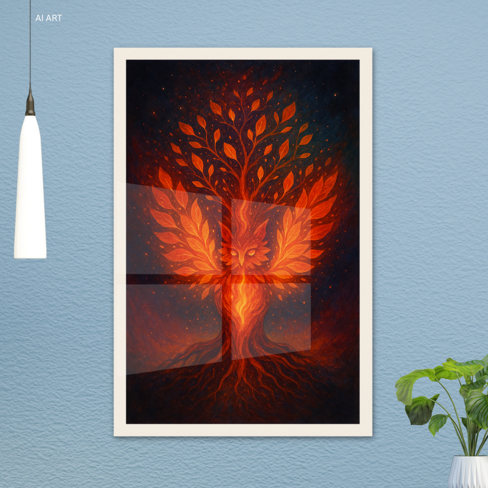 A blazing tree takes flight as a phoenix, symbolizing rebirth, strength, and eternal growth. 🔥🌳✨