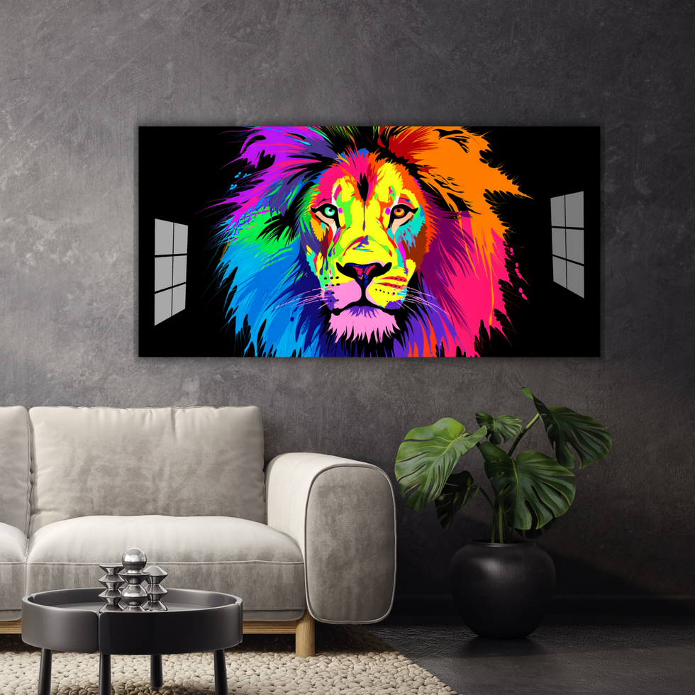 A bold and electrifying lion artwork bursting with rainbow energy — perfect for adding power, colour, and attitude to any modern space.