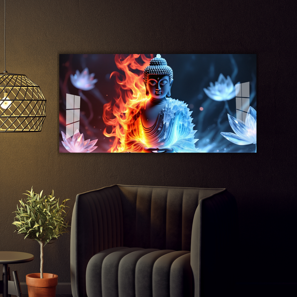 ✨ A powerful depiction of Buddha in fire and ice, symbolising perfect balance, calm, and divine duality — a striking centrepiece for modern décor.